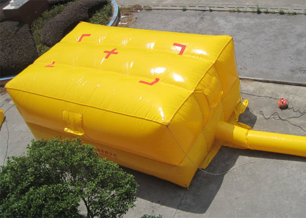 1、救生充气垫是一种接救从高处下跳人员的充气软垫 ,它可减少下跳人员在着地时所受到的冲击,起到缓冲和保护作用。 2、本公司生产的救生充气垫面料选用特制的防火布,由坚韧的乙烯基纤维做内层,外涂进口防火阻燃剂打磨组合制成。抗拉撕裂强度高,具有阻燃防火、防水、防腐蚀、耐酸碱、耐磨损、耐老化、耐油、耐寒、耐热等性能,可任意折叠。 3、产品结构主要分为三个部分:低压上层承接面气垫,紧急高压下层保护面气垫,独立高速风机连接气垫进风管。操作过程是采用风机向整个气垫内充气约50秒,使整个气垫内充满空气,以达到承接自由落下人员。4、耐老化、阻燃、耐磨损、耐油、强度高、稳定性强、可靠性、耐高低温。
