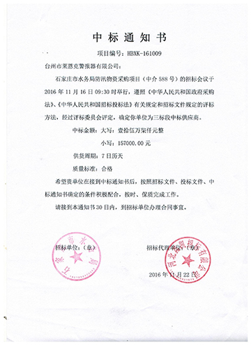 石家庄水利-中标通知书